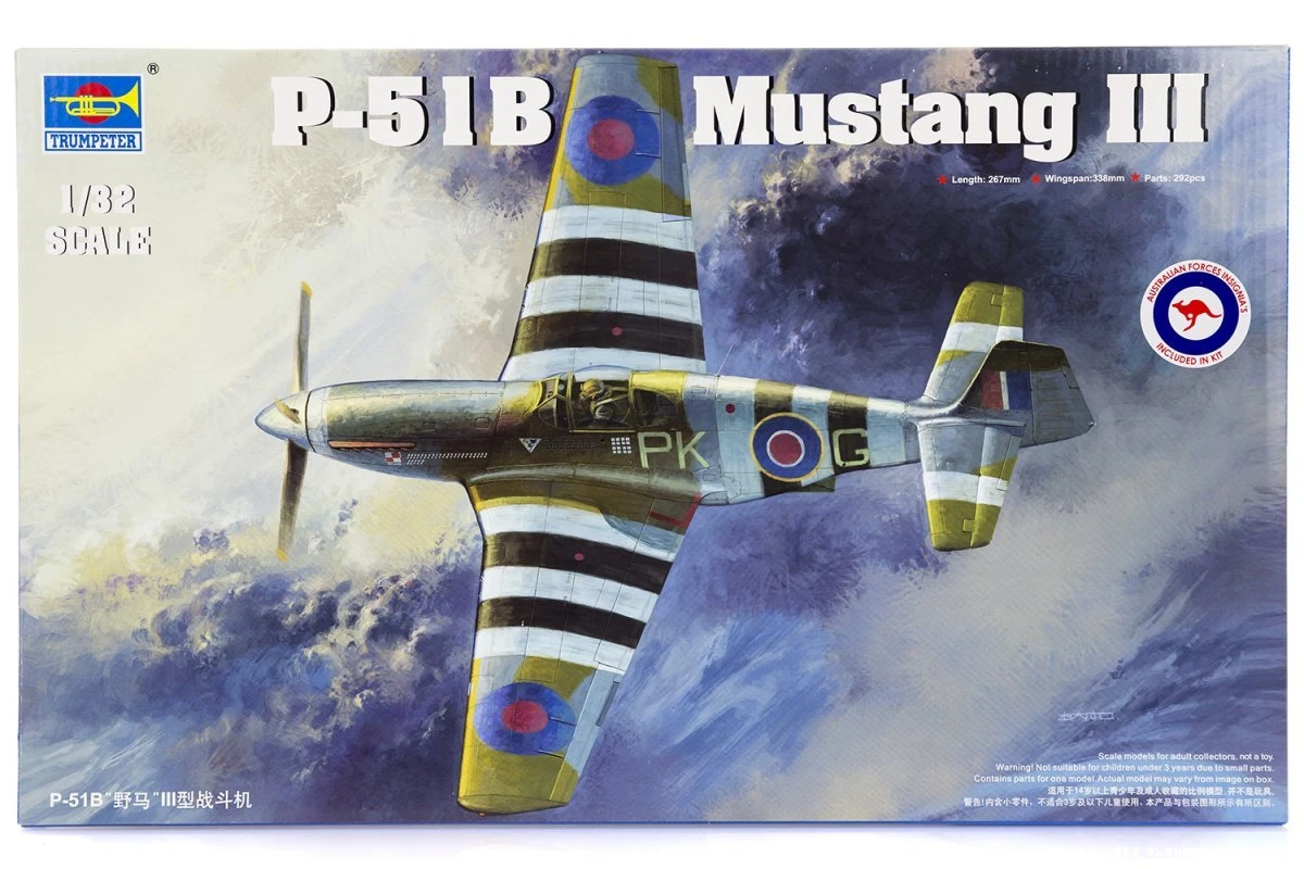 02283 | Trumpeter 1/32 P-51B Mustang III Fighter Scaled Plastic Model Kit W/ Australian Decals