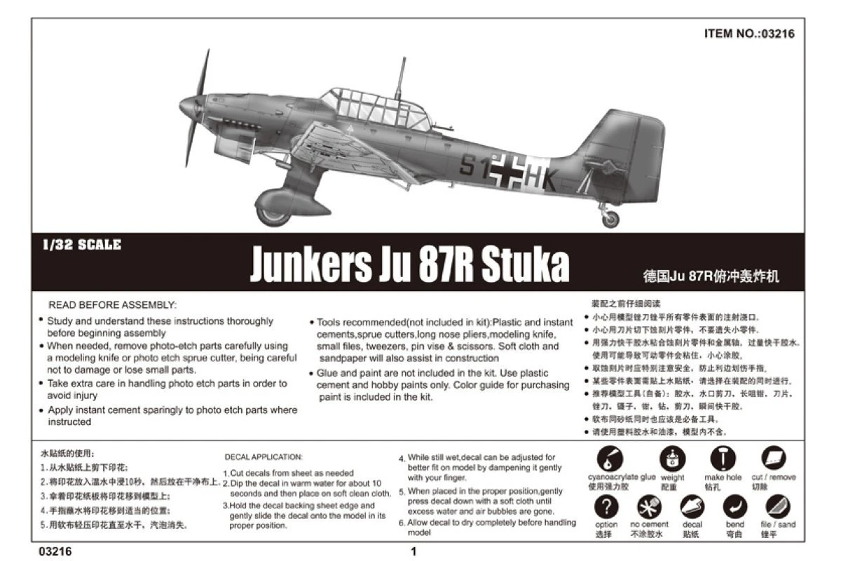 03216 | Trumpeter 1/32 Junkers Ju-87R Stuka Bomber Scaled Plastic Model Kit