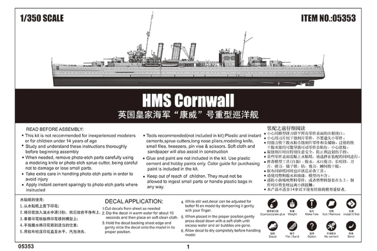 HMS cornwall in 1928 in Davenport shipyard completed, accepted the modernizing period 1935-38 and subsequently remained in service until 1941 at the local fleet. 1941-42 served in the Royal Navy in the East to fight with the Japanese fleet. HMS cornwall finally April 5, 1942 by the Japanese First Air Flotilla sank in waters southwest of Ceylon, Colombo.