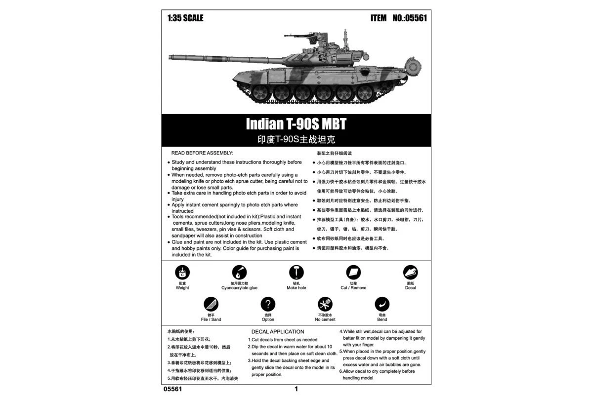 05561 | Trumpeter 1/35 Indian T-90S Main Battle Tank Scaled Plastic Model Kit -Trumpeter Sales Shop TRU 05561 56 1200x800 1