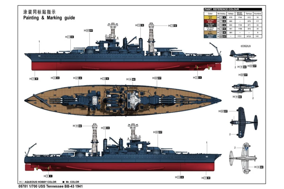 05781 | Trumpeter 1/700 USS Tennessee BB-43 1941 Battleship Plastic Model Kit